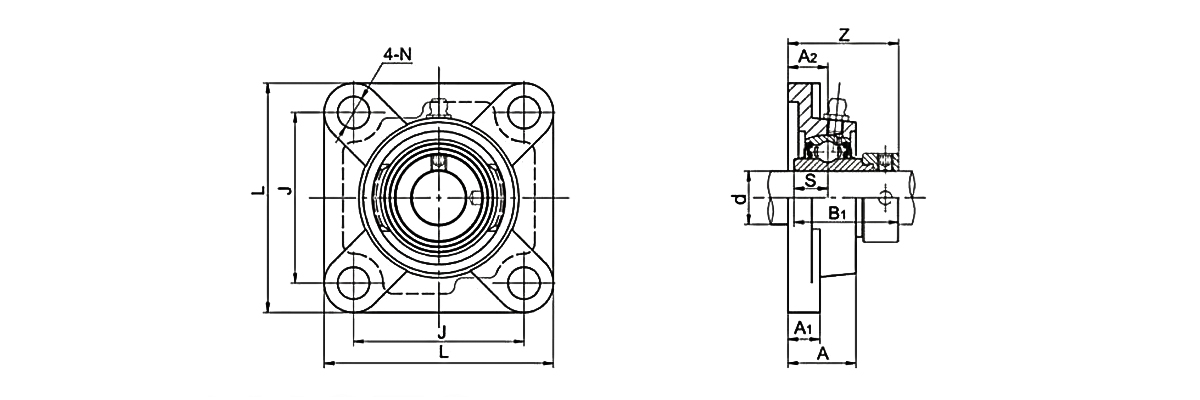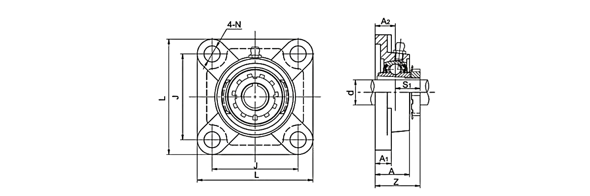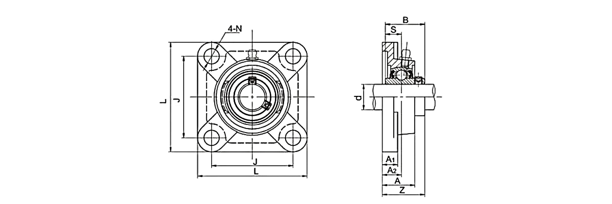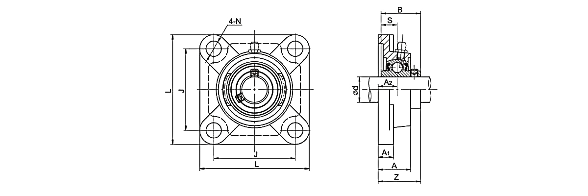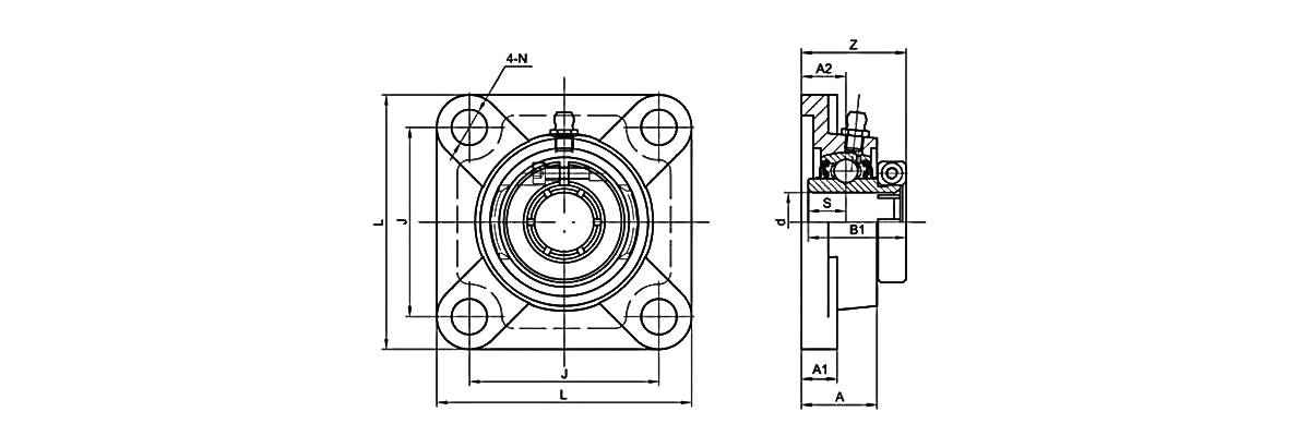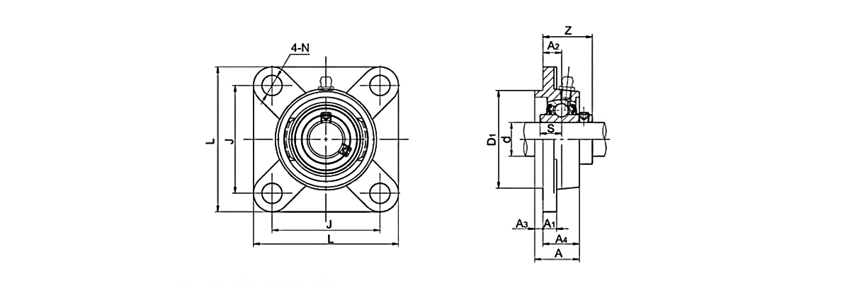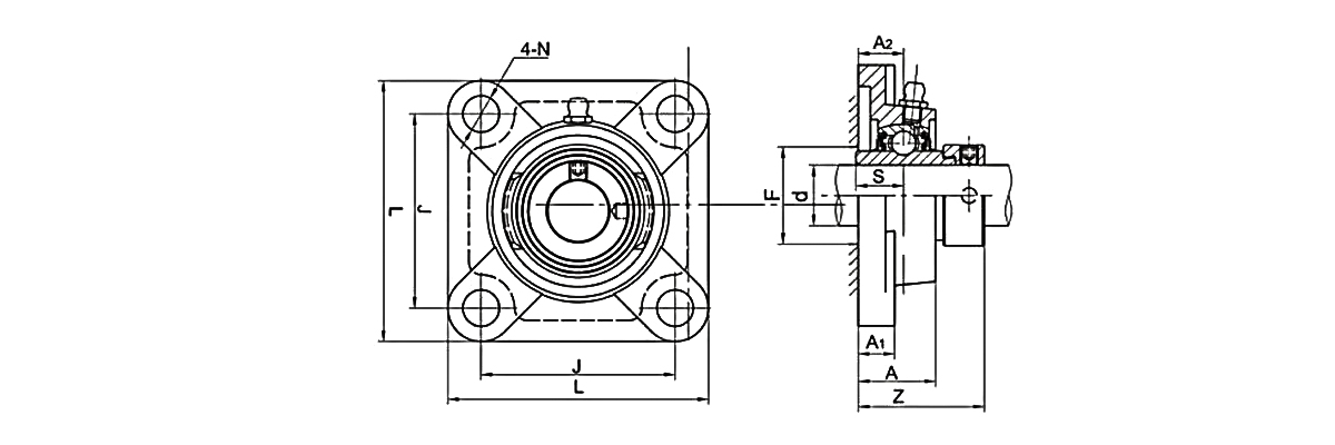 4-болтовые фланцевые подшипниковые узлы - это один из видов навесных шарикоподшипниковых узлов, эта конструкция имеет 4 болта в корпусе и ее суффикс - серия UCF. Шарикоподшипниковые узлы UCF также наиболее широко используются на рынке.