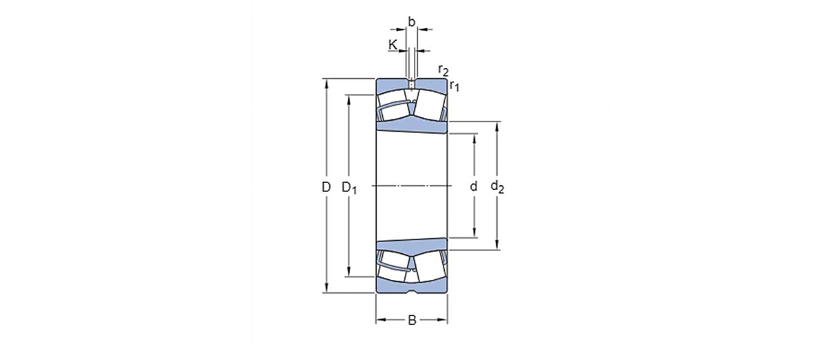 ·Конструктивное исполнение: Состоят из двух рядов бочкообразных (сферических) роликов. Внешнее кольцо имеет общую вогнутую сферическую дорожку качения, а внутреннее кольцо — две вогнутые дорожки, наклоненные под углом к оси подшипника. Центр кривизны дорожки качения внешнего кольца совпадает с геометрическим центром подшипника.