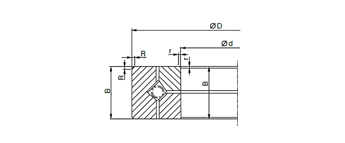 ·Высокомоментная грузоподъемность: Расположение скрещенных роликов позволяет подшипнику выдерживать высокие опрокидывающие моменты.